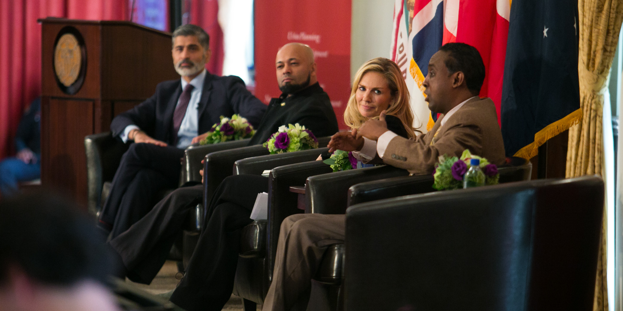Panelist Mohamed Ahmed, founder of Average Mohamed (pictured above, right), spoke about approaches to countering extremist messaging. The OC Register reported: